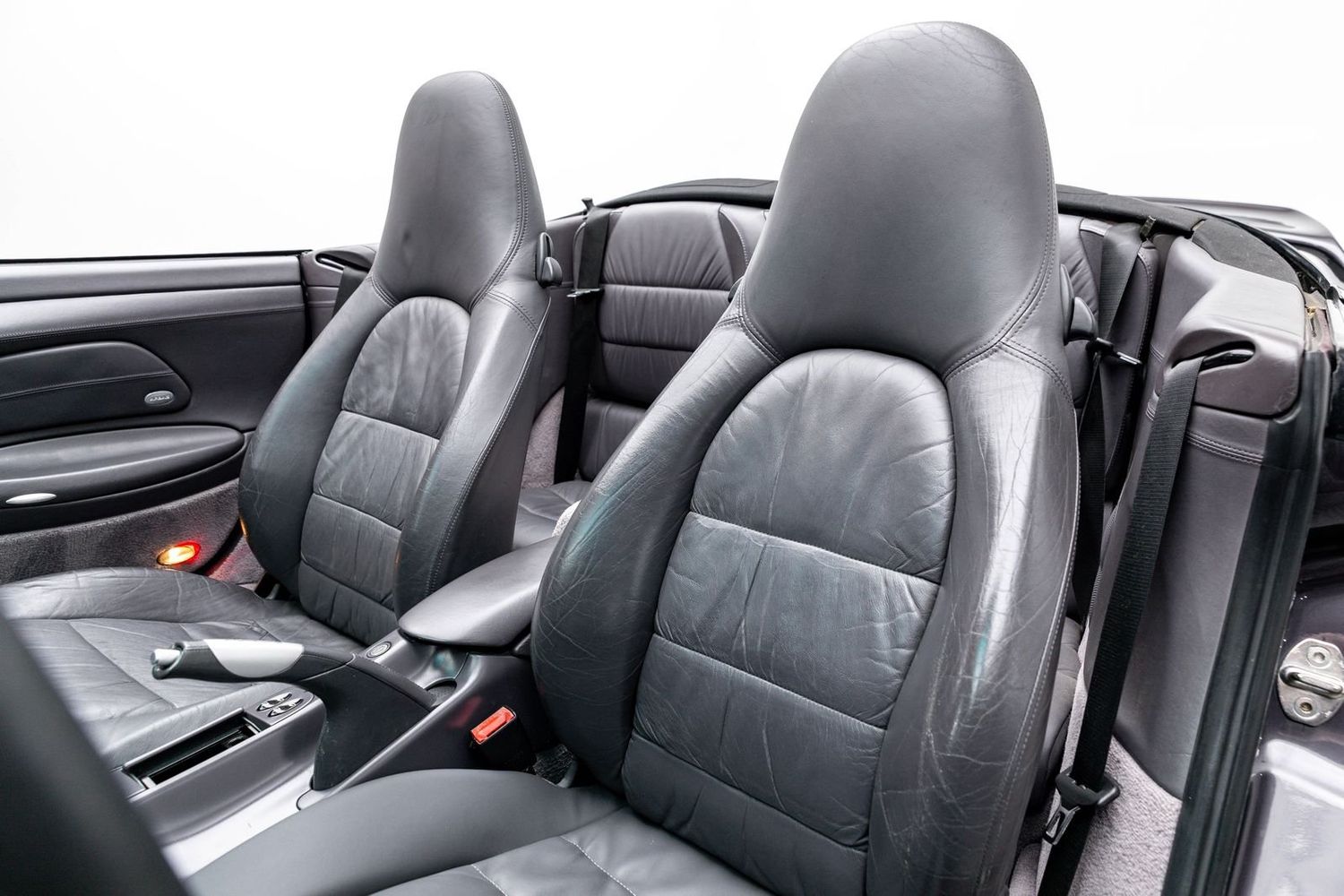 Thank you for visiting LOCO Motorcars, Loudoun County Exotic Motorcars destination. Experience the thrill of driving with this stunning 2000 Porsche 911 Carrera Cabriolet, 6-speed manual transmission is a masterpiece that blends timeless design with exhilarating performance. Finished in the rare and captivating Vesuvio Metallic exterior paired with a sleek black soft top, this convertible is an eye-catching beauty on any road. The Space Gray leather interior complements its sophisticated look, offering an inviting cabin that exudes luxury and comfort.