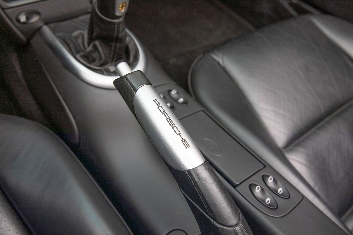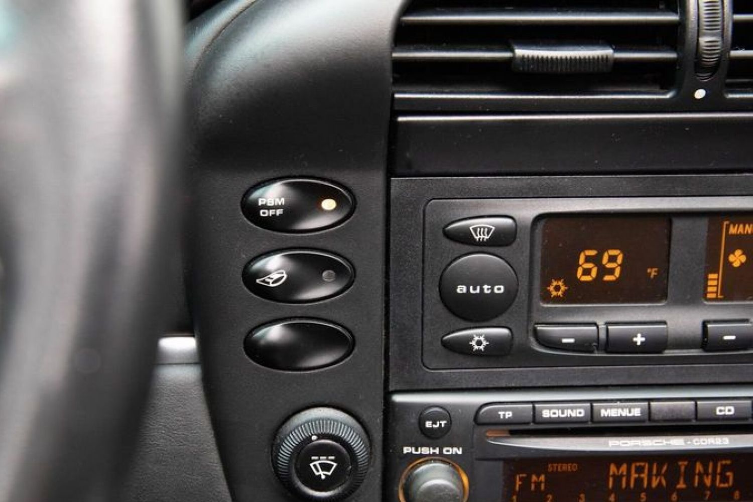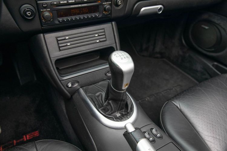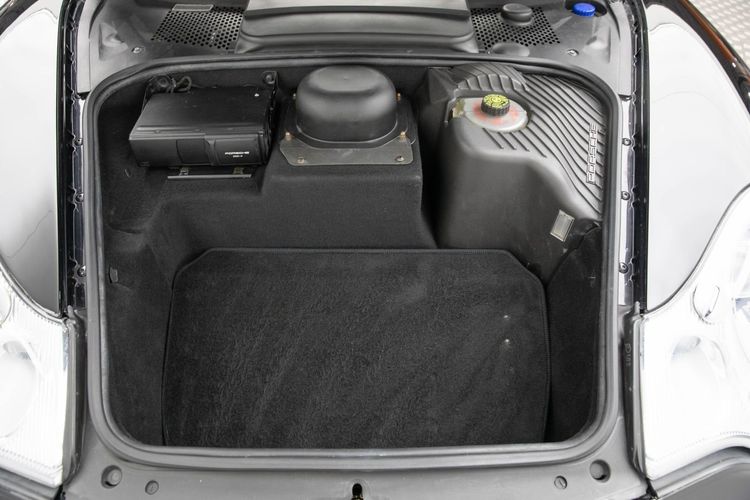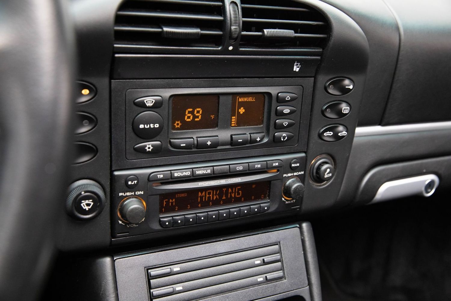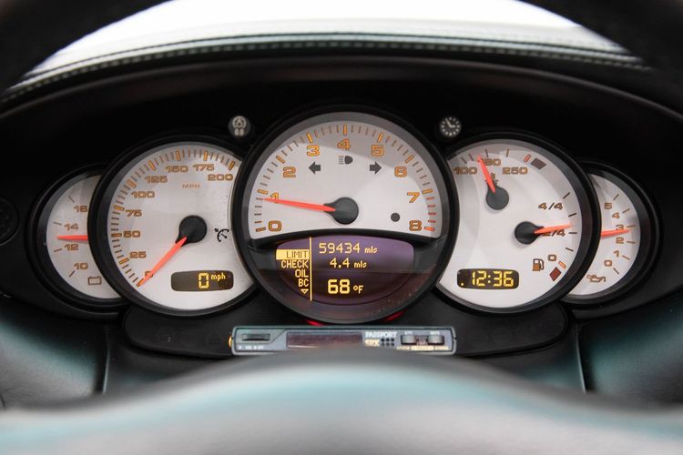 This Porsche isn't just about looks; it's also packed with thoughtful extras including a Passport radar detector for added peace of mind during spirited drives and distinctive touches like aluminum instrument dials and door sill model insignia that highlight its exclusivity—an original factory MSRP of $104,985 speaks volumes about its pedigree.