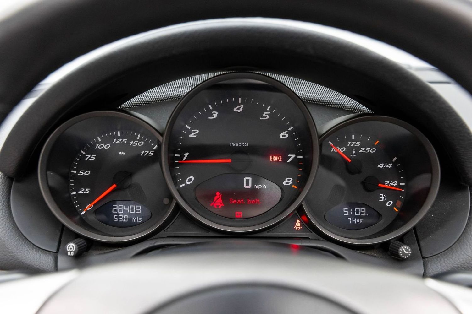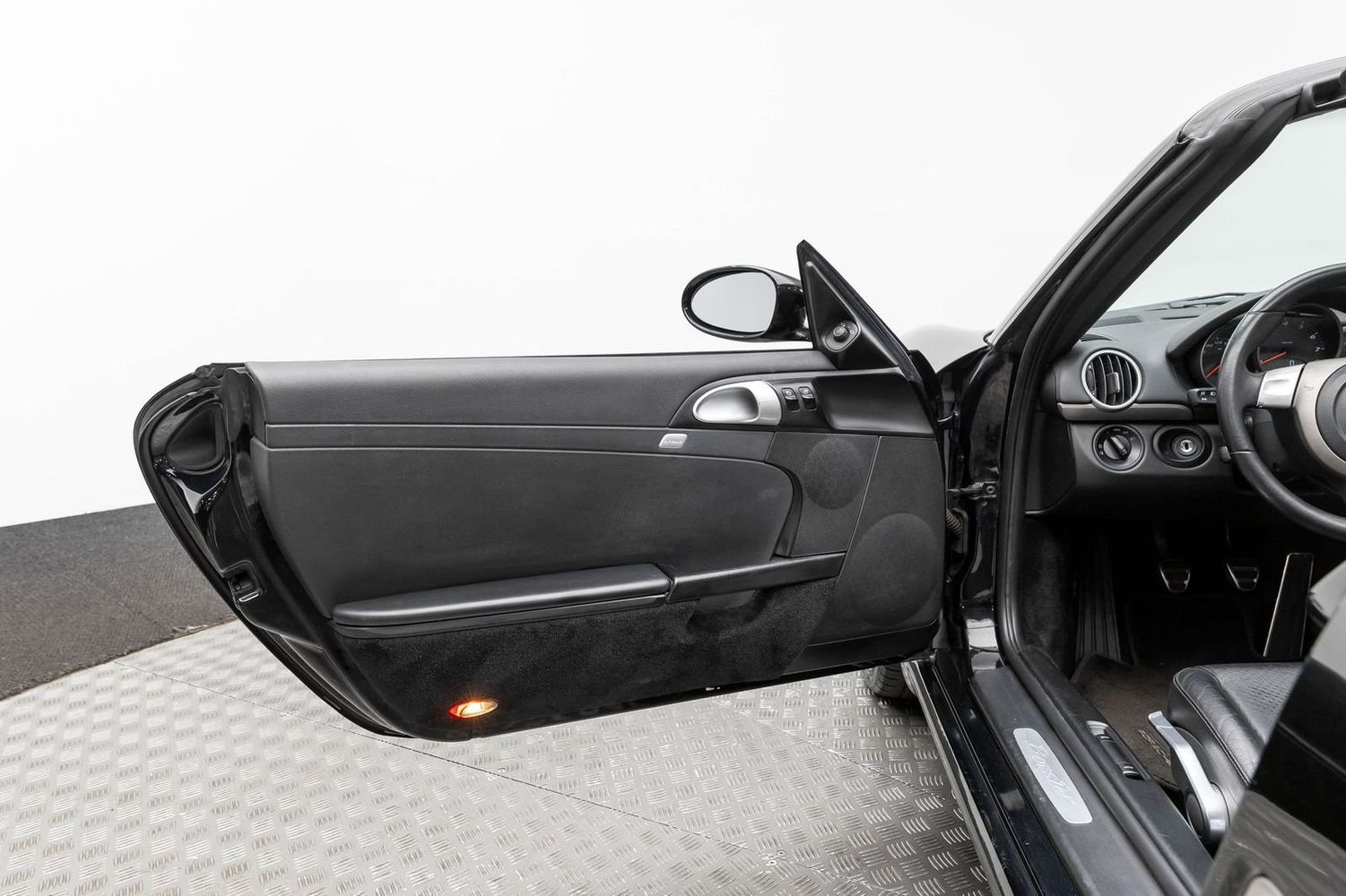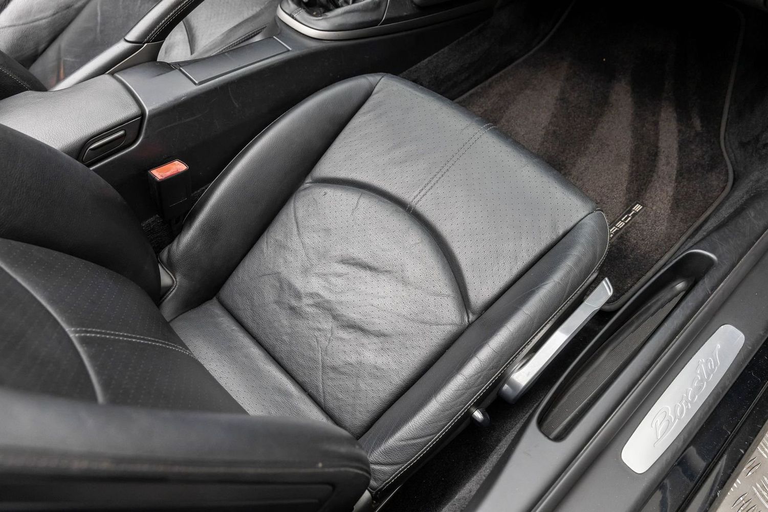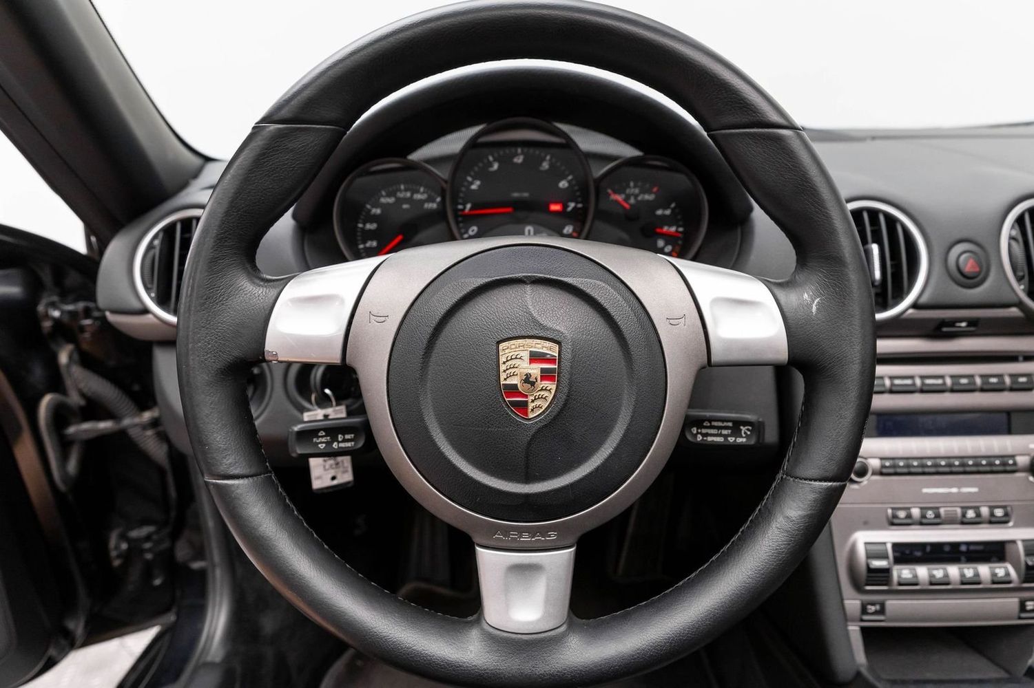 This Porsche Boxster is equipped for both comfort and high-performance motoring. The leather seat trim offers luxury at your fingertips while ensuring maximum comfort during those spirited drives or leisurely cruises down scenic routes. Its Bi-Xenon Headlamp Package provides superior visibility with projector beam headlights that include auto-leveling features and headlight washers—perfect for any nighttime adventure or inclement weather conditions.