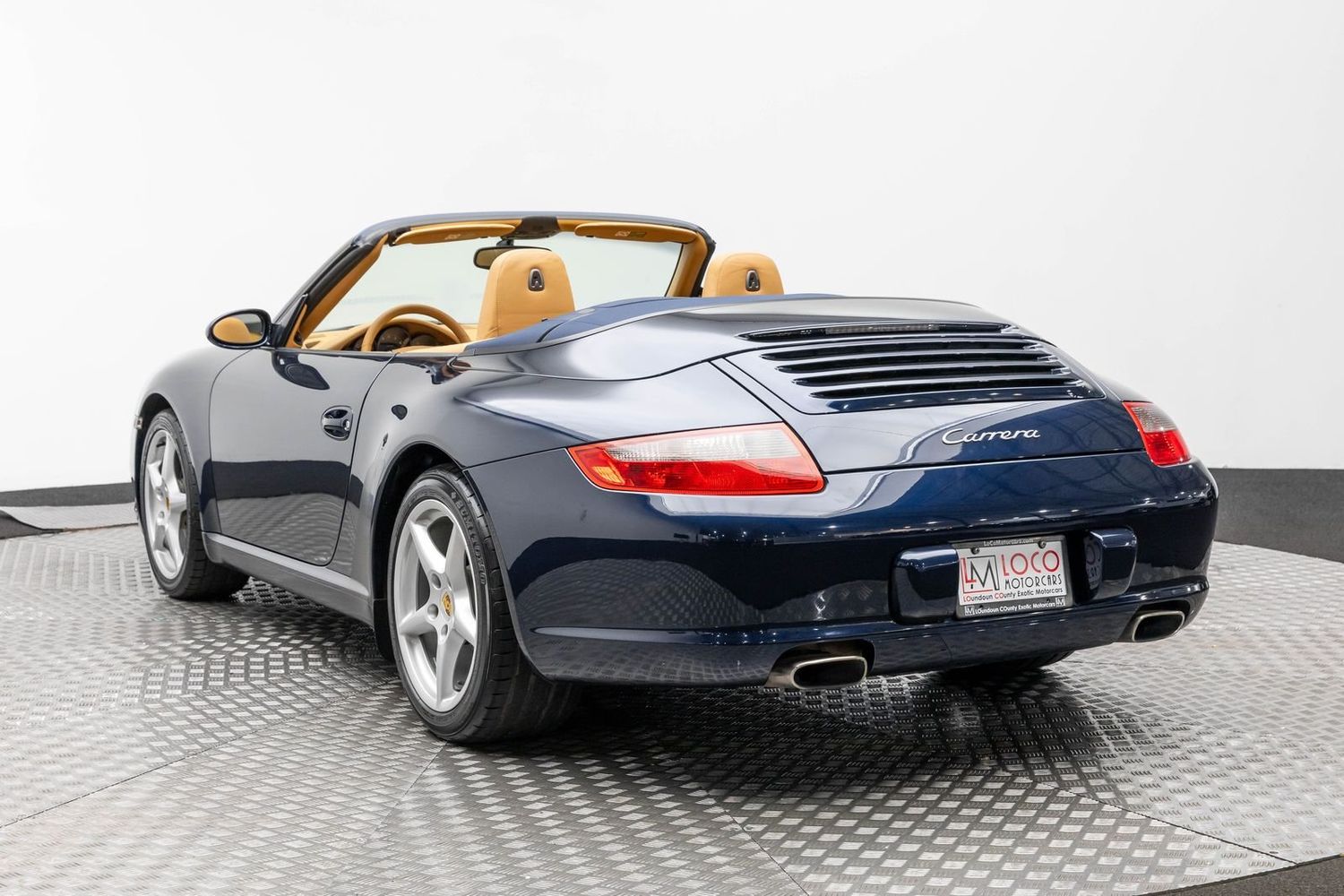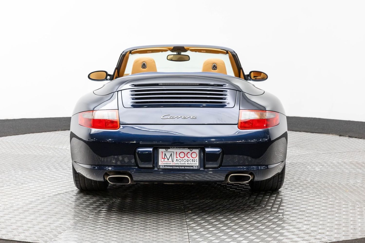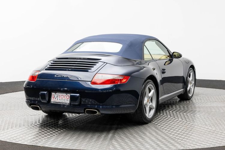 Thank you for visiting LOCO Motorcars, Loudoun County Exotic Motorcars destination. Experience the thrill of open-air driving with this stunning 2006 Porsche 911 Carrera Convertible, a masterpiece that combines luxury and performance in one sleek package. With its captivating Midnight Blue Metallic exterior paired with an elegant Sand Beige interior, this vehicle is not just a car; it's a statement. The clean CARFAX report assures you of its pristine history, while the low mileage of just 58,057 miles means it has plenty more adventures to offer.