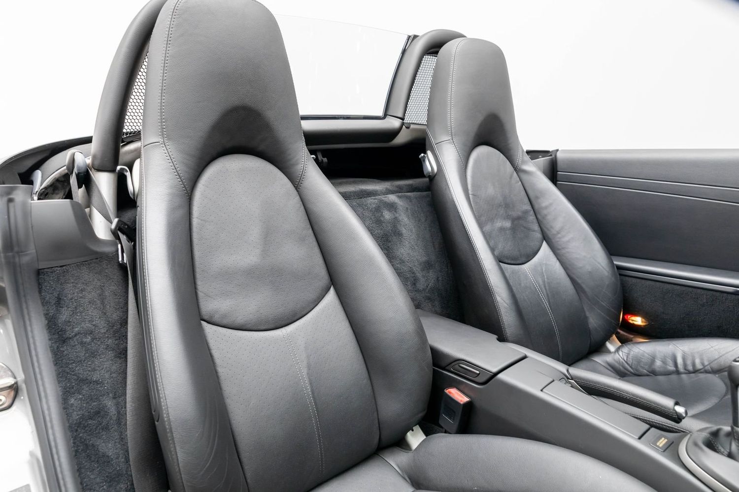 Under the hood lies a robust 2.7L flat-six engine producing an exhilarating 245 horsepower and 201 lb-ft of torque, all managed through a precise 5-speed manual transmission for those who crave the authentic sports car experience. The Boxster's dynamic handling is further enhanced by Bridgestone Potenza tires mounted on striking 18-inch Boxster S wheels—designed to hug every curve with precision.