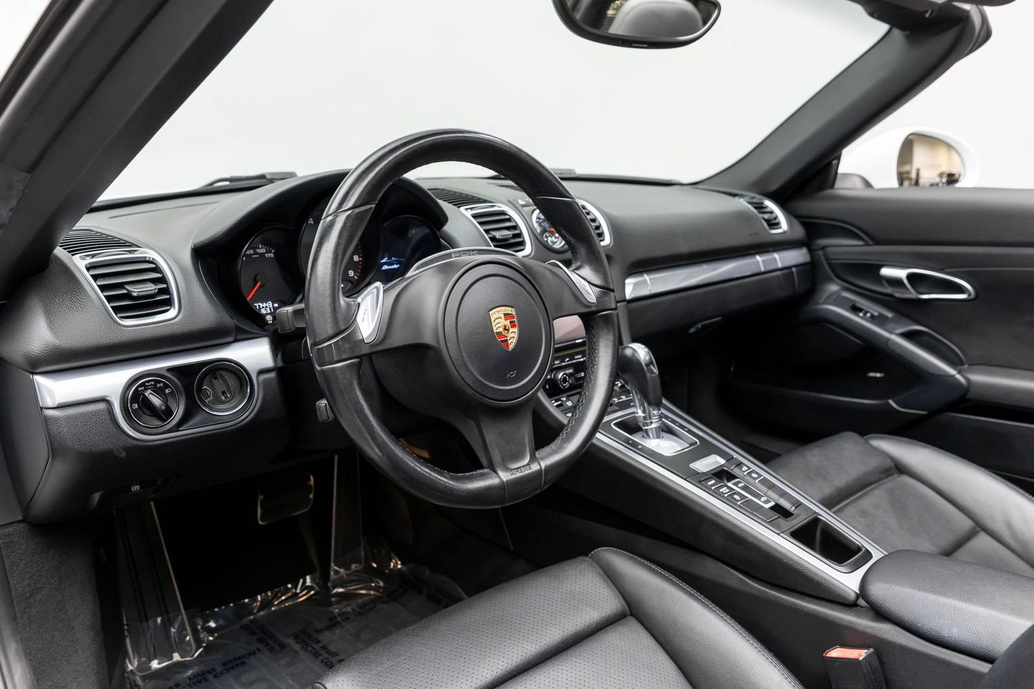 Thank you for visiting LOCO Motorcars, Loudoun County Exotic Motorcars destination. Experience the thrill of open-air driving with this stunning 2013 Porsche Boxster Convertible, a masterpiece of engineering and design. Dressed in an elegant white exterior paired with a sophisticated black leather interior, this vehicle is not just about looks; it's about performance and luxury intertwined seamlessly. Under the hood lies a robust 6-cylinder engine that delivers an impressive 265 horsepower and 206 lb-ft of torque, ensuring every drive is exhilarating. The PDK 7-speed auto-shift manual transmission provides seamless gear changes for optimal performance whether you're cruising through city streets or carving up mountain roads.