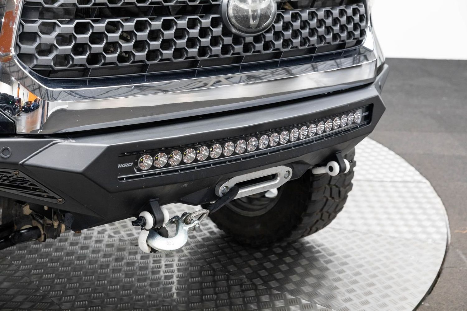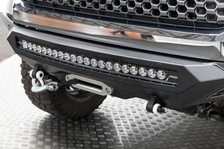 The exterior is enhanced by a striking ADD Stealth Fighter Steel Bumper featuring an integrated RIGID LED light bar that not only adds aggressive styling but also provides superior illumination for nighttime adventures. Complementing its bold look are Rough Country Tube Running Boards and MBRP Dual Performance Exhaust System that offer both functionality and a deep growl to match its performance capabilities. The Heavy Duty Lift Kit System with Bilstein Performance Shocks elevates your ride experience while providing unmatched stability across challenging landscapes.