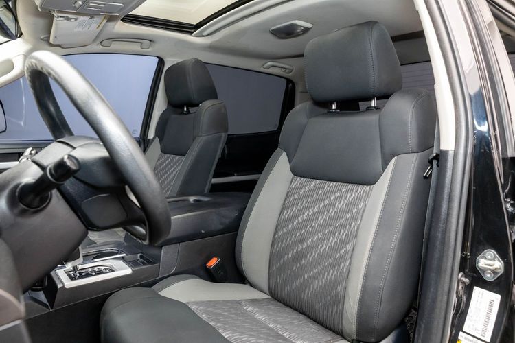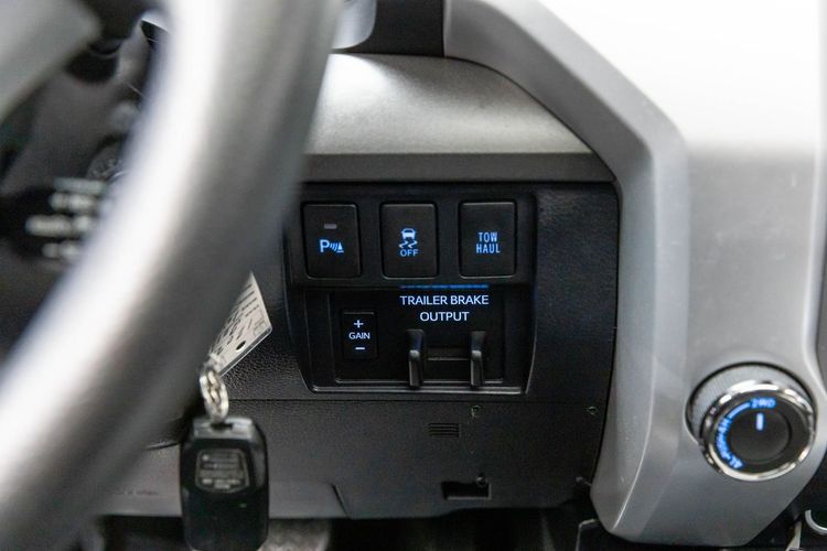 Inside, comfort meets technology with Graphite fabric seats offering durability against wear-and-tear alongside modern conveniences like Entune AM/FM/HD Radio complete with navigation and Bluetooth connectivity for seamless communication on-the-go. Safety features such as front/rear parking assist sonar ensure peace-of-mind during every journey while the HomeLink Universal Transceiver offers added convenience at home or work sites alike.