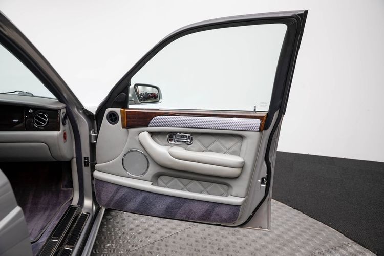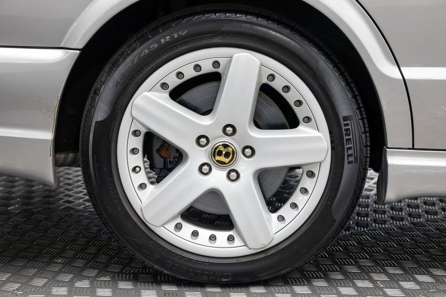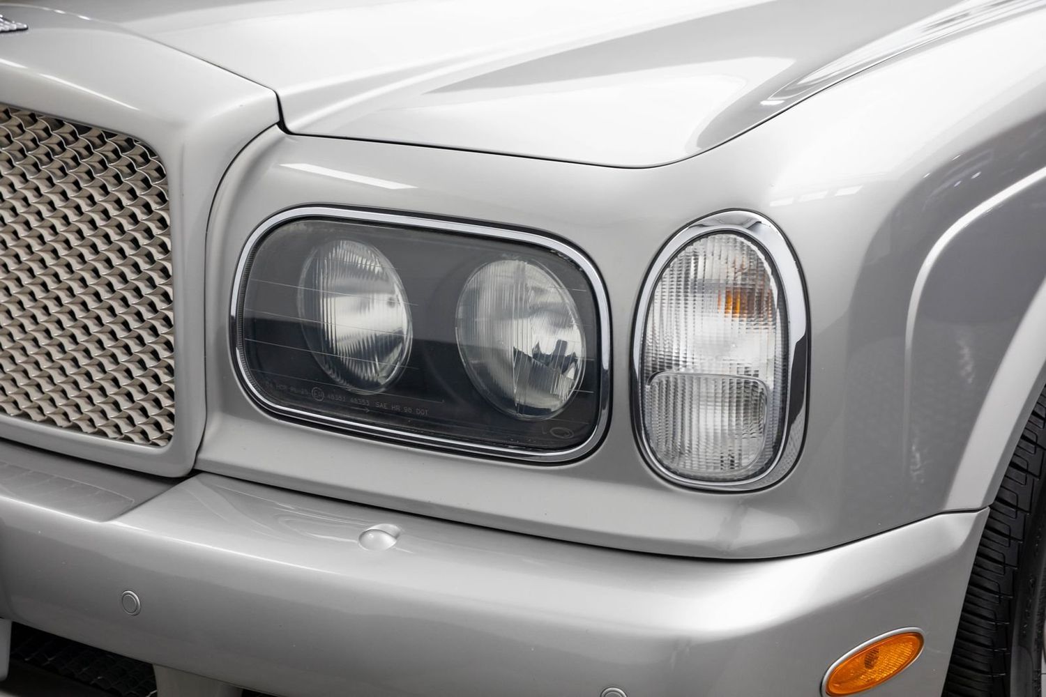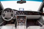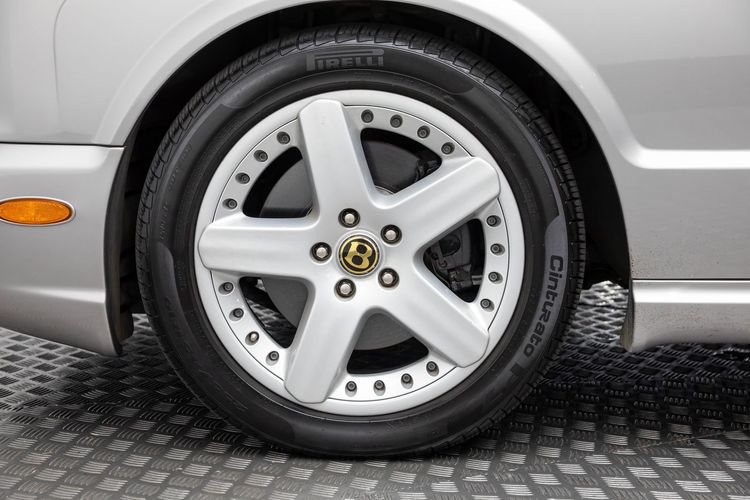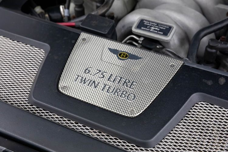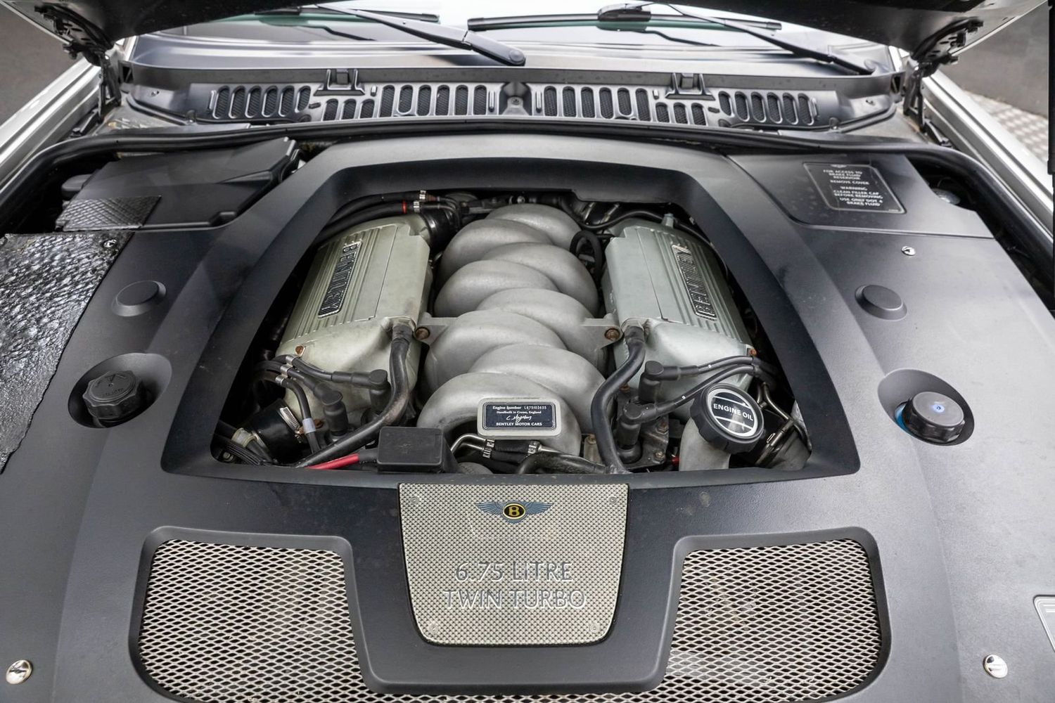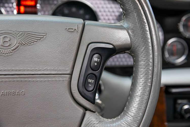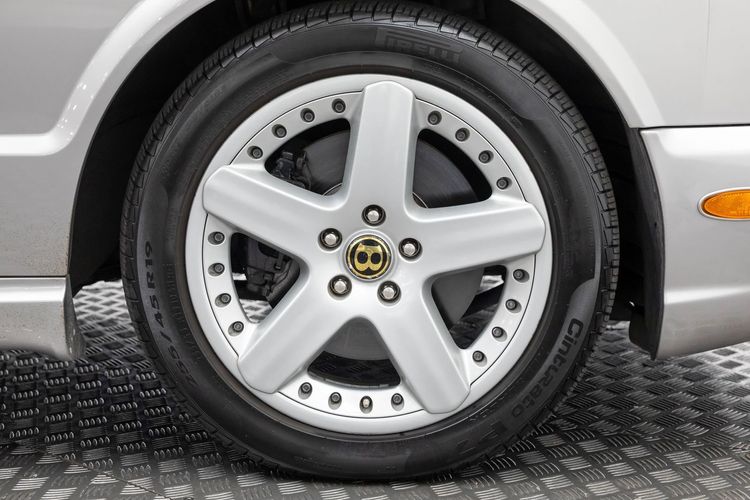 Under the hood lies a formidable 6.75-liter twin-turbocharged V8 engine, delivering an impressive 450 horsepower and 645 lb-ft of torque. This powerhouse propels the Arnage T from zero to sixty in just 5.8 seconds, reaching top speeds up to 170 mph—making it one of the most powerful road-going cars ever produced by Bentley at its launch. The driving experience is further enhanced by factory equipment such as distinctive mesh grille inserts and specific wheels that underscore its sporty demeanor.
