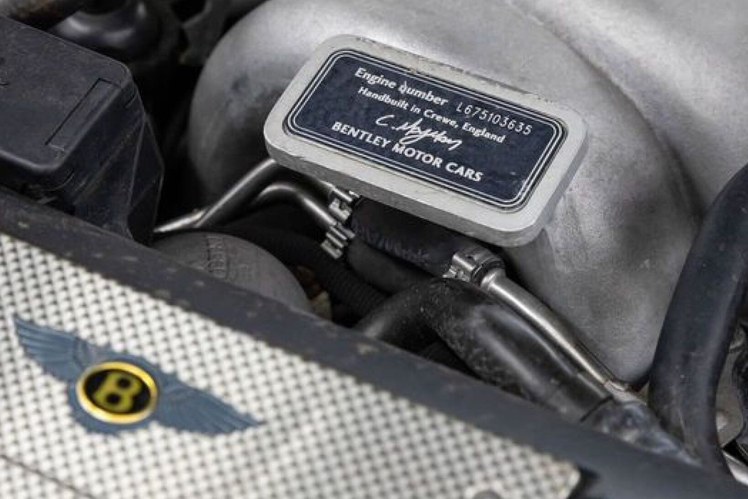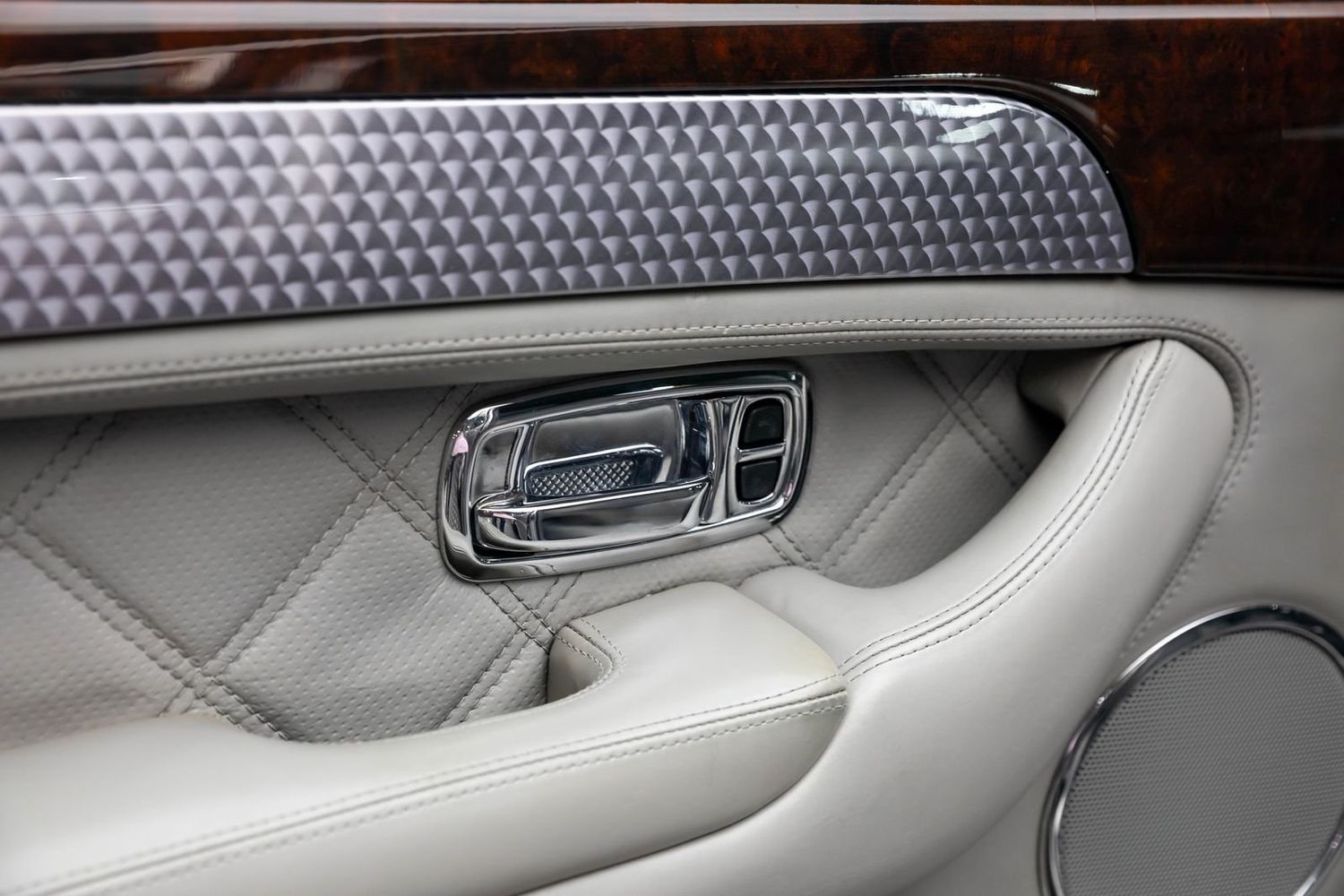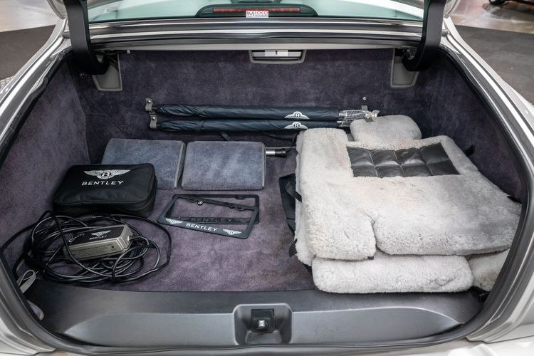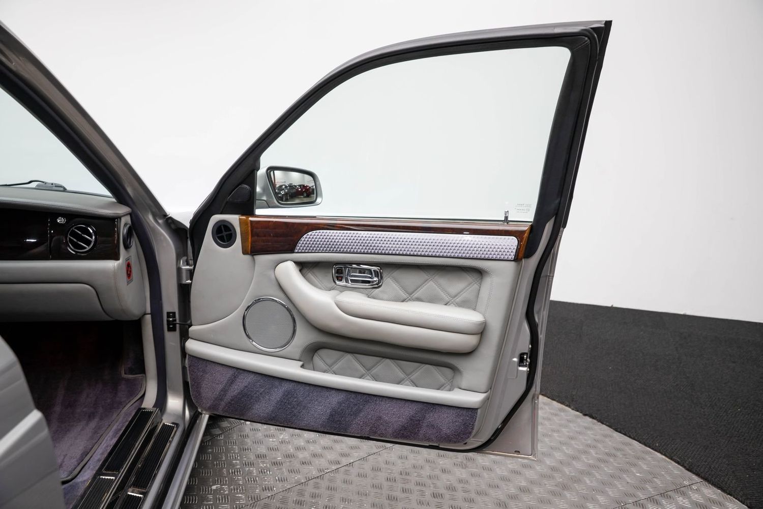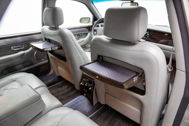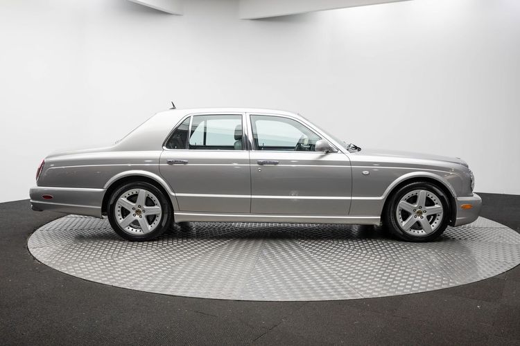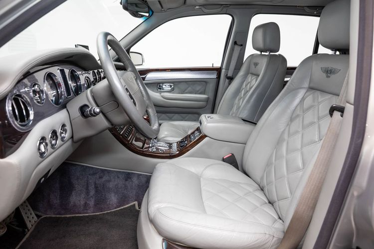 Under the hood lies a formidable 6.75-liter twin-turbocharged V8 engine, delivering an impressive 450 horsepower and 645 lb-ft of torque. This powerhouse propels the Arnage T from zero to sixty in just 5.8 seconds, reaching top speeds up to 170 mph—making it one of the most powerful road-going cars ever produced by Bentley at its launch. The driving experience is further enhanced by factory equipment such as distinctive mesh grille inserts and specific wheels that underscore its sporty demeanor.