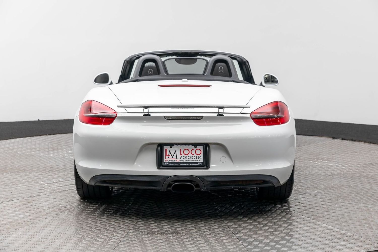 Thank you for visiting LOCO Motorcars, Loudoun County Exotic Motorcars destination. Experience the thrill of open-air driving with this stunning 2013 Porsche Boxster Convertible, a masterpiece of engineering and design. Dressed in an elegant white exterior paired with a sophisticated black leather interior, this vehicle is not just about looks; it's about performance and luxury intertwined seamlessly. Under the hood lies a robust 6-cylinder engine that delivers an impressive 265 horsepower and 206 lb-ft of torque, ensuring every drive is exhilarating. The PDK 7-speed auto-shift manual transmission provides seamless gear changes for optimal performance whether you're cruising through city streets or carving up mountain roads.