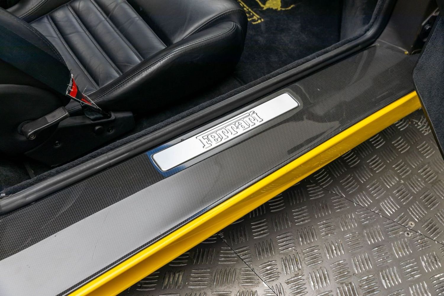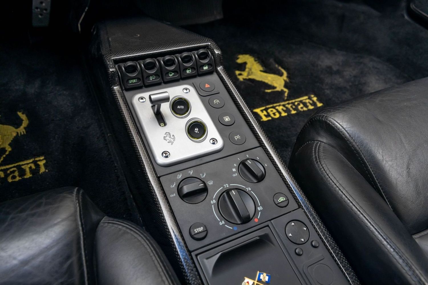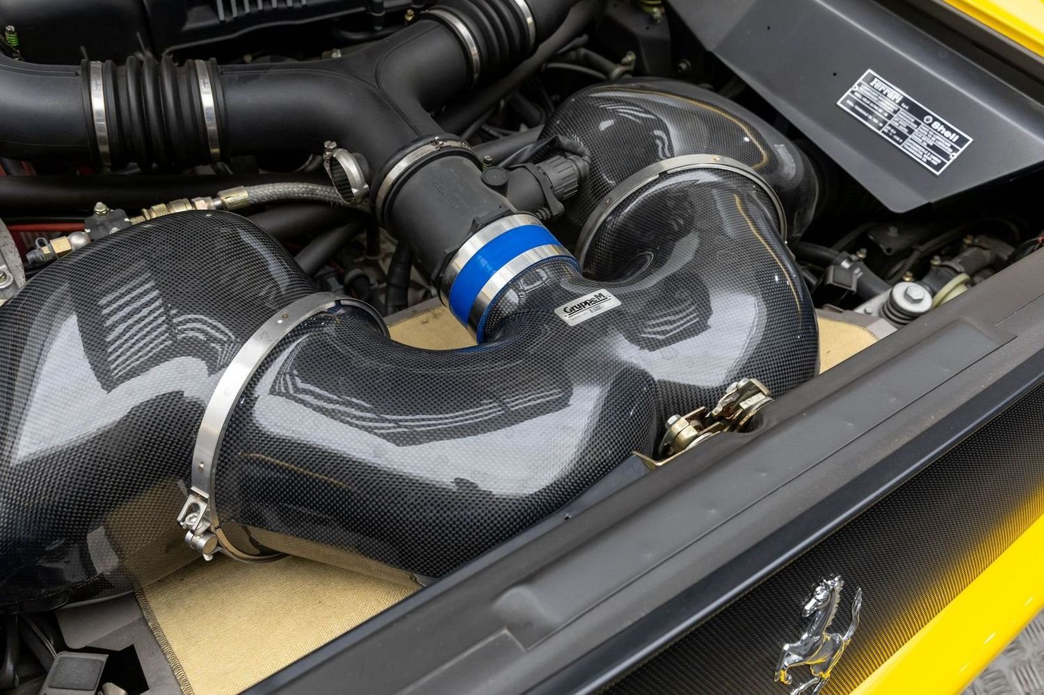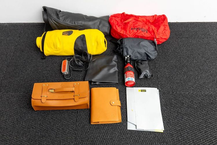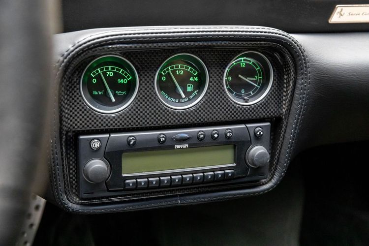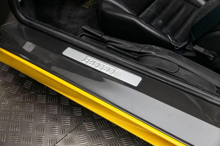 This example comes with all original books, tools, luggage, and a leather tonneau boot cover, ensuring it is fully documented and collector-ready. Performance and aesthetic enhancements include GruppeM Carbon Fiber air intake, factory full carbon fiber interior trim, paddle shift, door sills, and center console, giving the car both improved performance and a modernized, aggressive look while maintaining its classic analog Ferrari character.