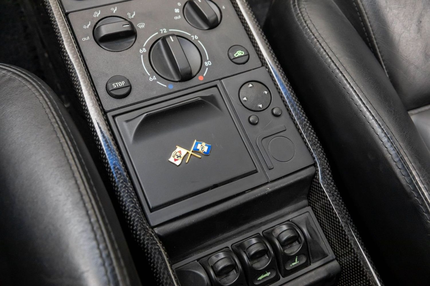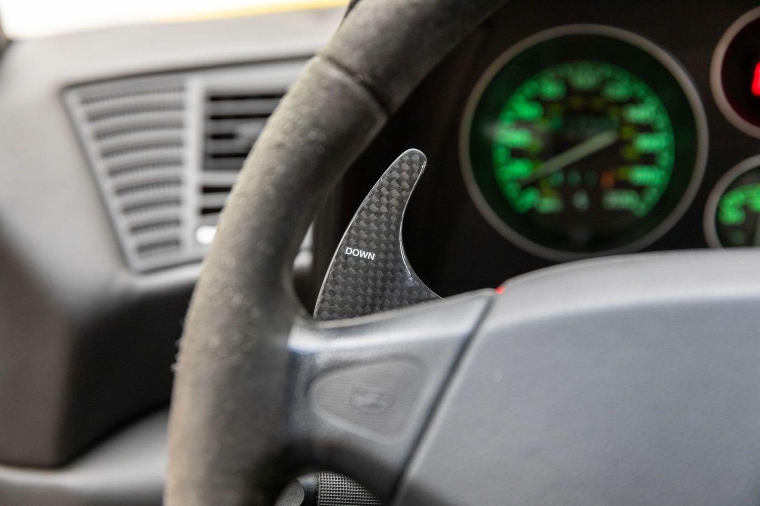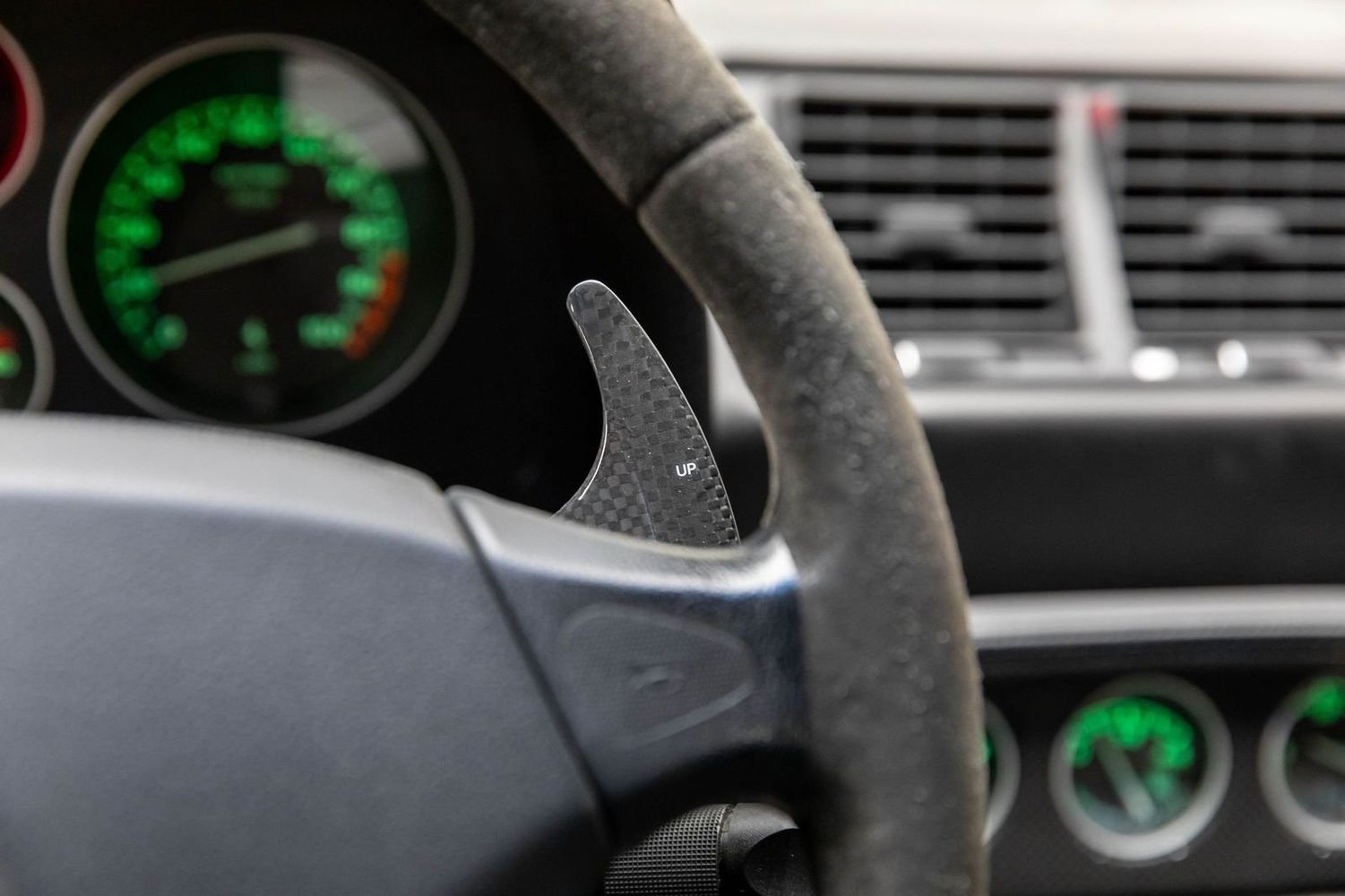 This example comes with all original books, tools, luggage, and a leather tonneau boot cover, ensuring it is fully documented and collector-ready. Performance and aesthetic enhancements include GruppeM Carbon Fiber air intake, factory full carbon fiber interior trim, paddle shift, door sills, and center console, giving the car both improved performance and a modernized, aggressive look while maintaining its classic analog Ferrari character.