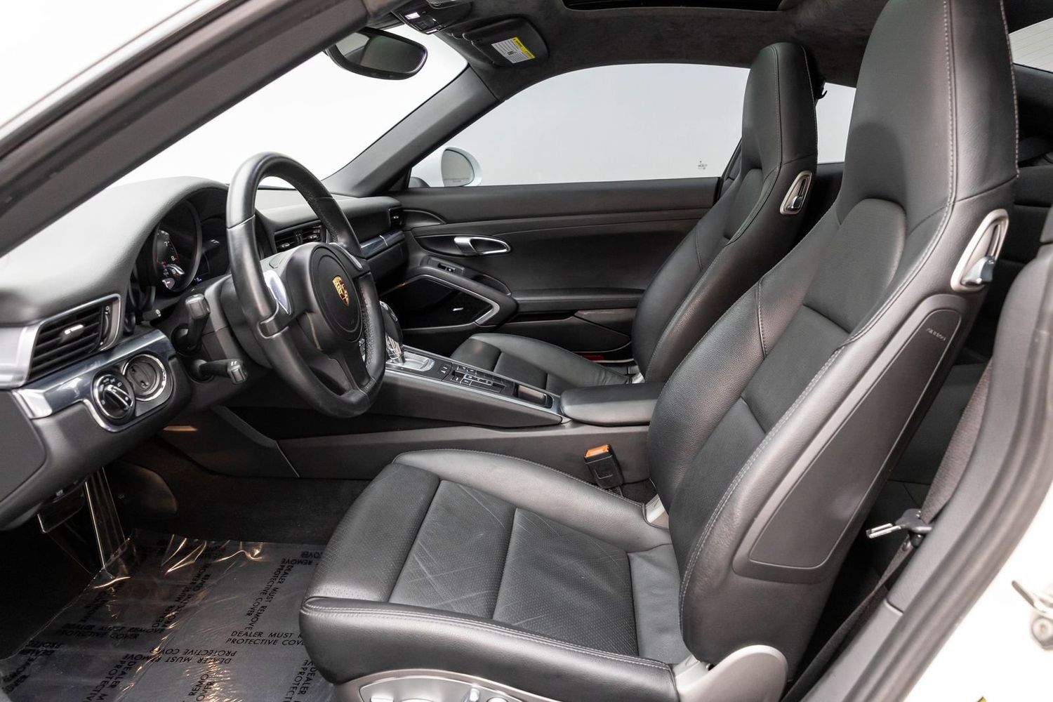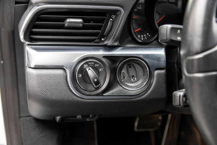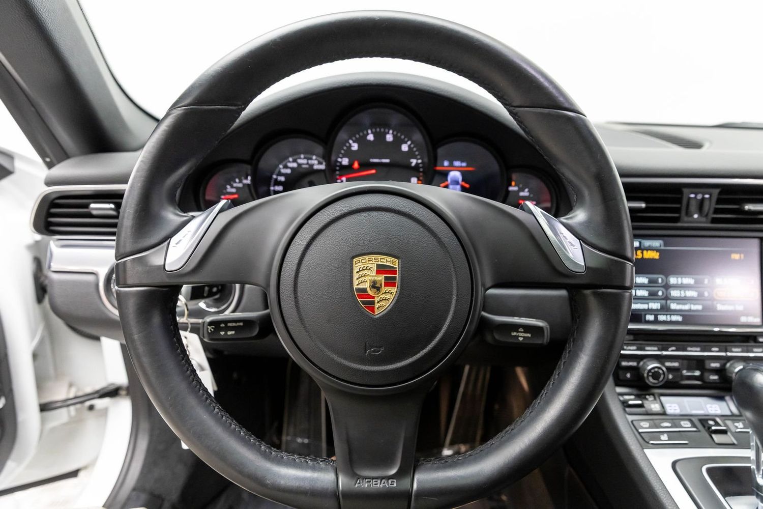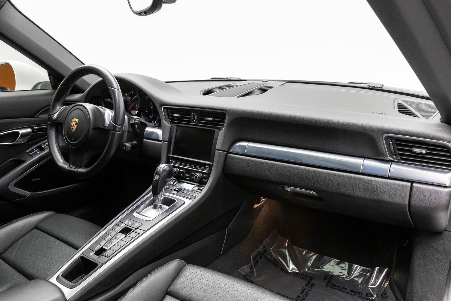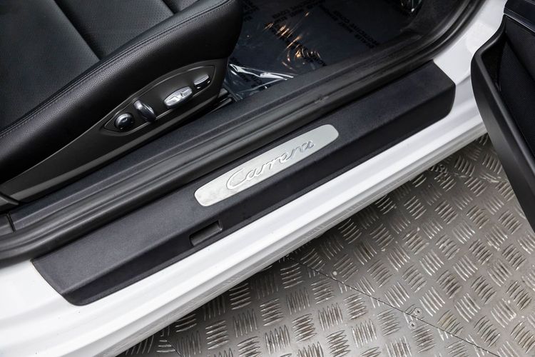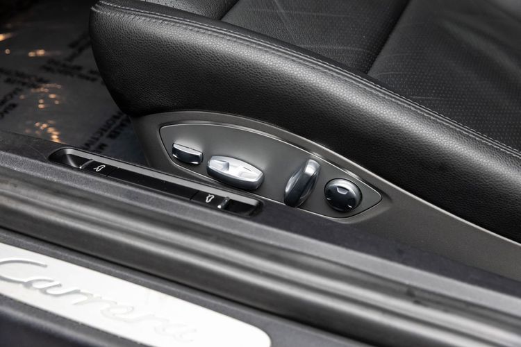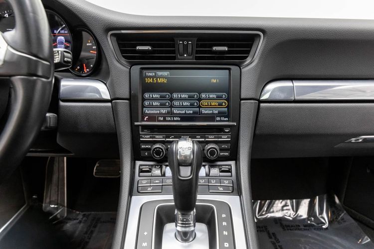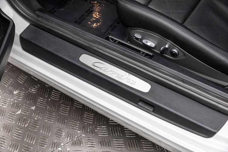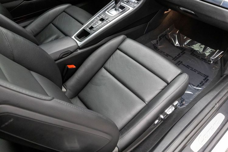 This Carrera rides on striking silver aluminum wheels fitted with Pirelli P-Zero Performance Tires ensuring exceptional grip around every corner—a true testament to Porsche's commitment to performance engineering perfection! Enhanced visibility comes courtesy of Bi-Xenon headlights featuring adaptive capabilities alongside automatically dimming mirrors providing optimal clarity day or night along with rare spec clear tailight option! Looks amazing with the white exterior.