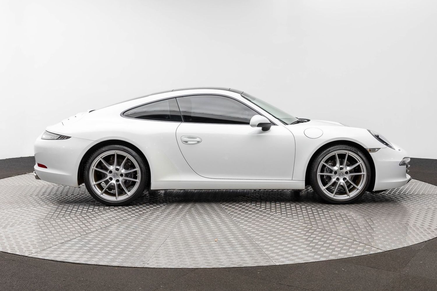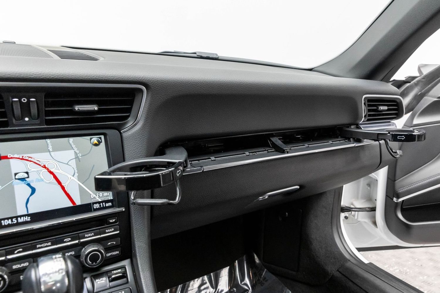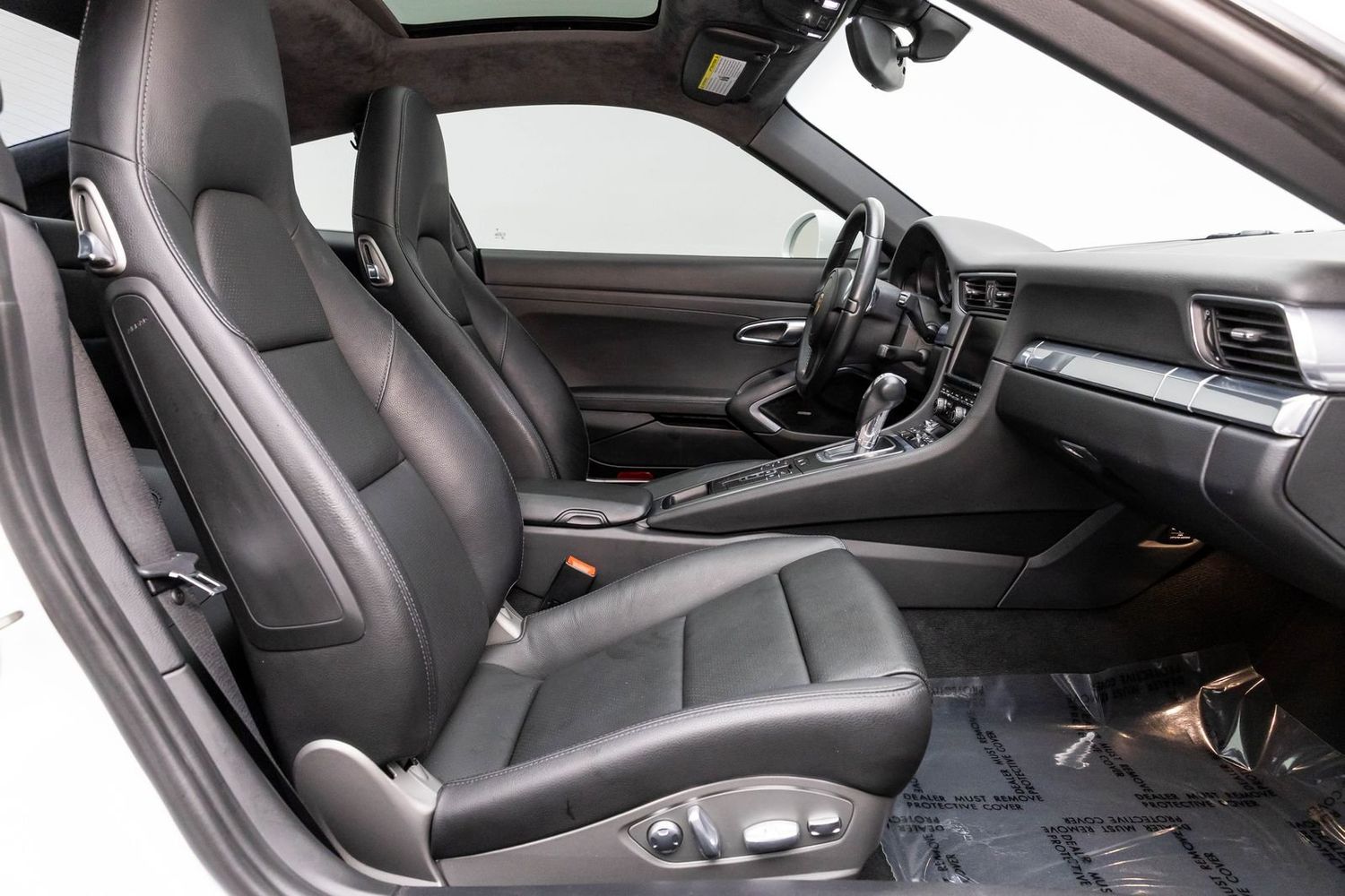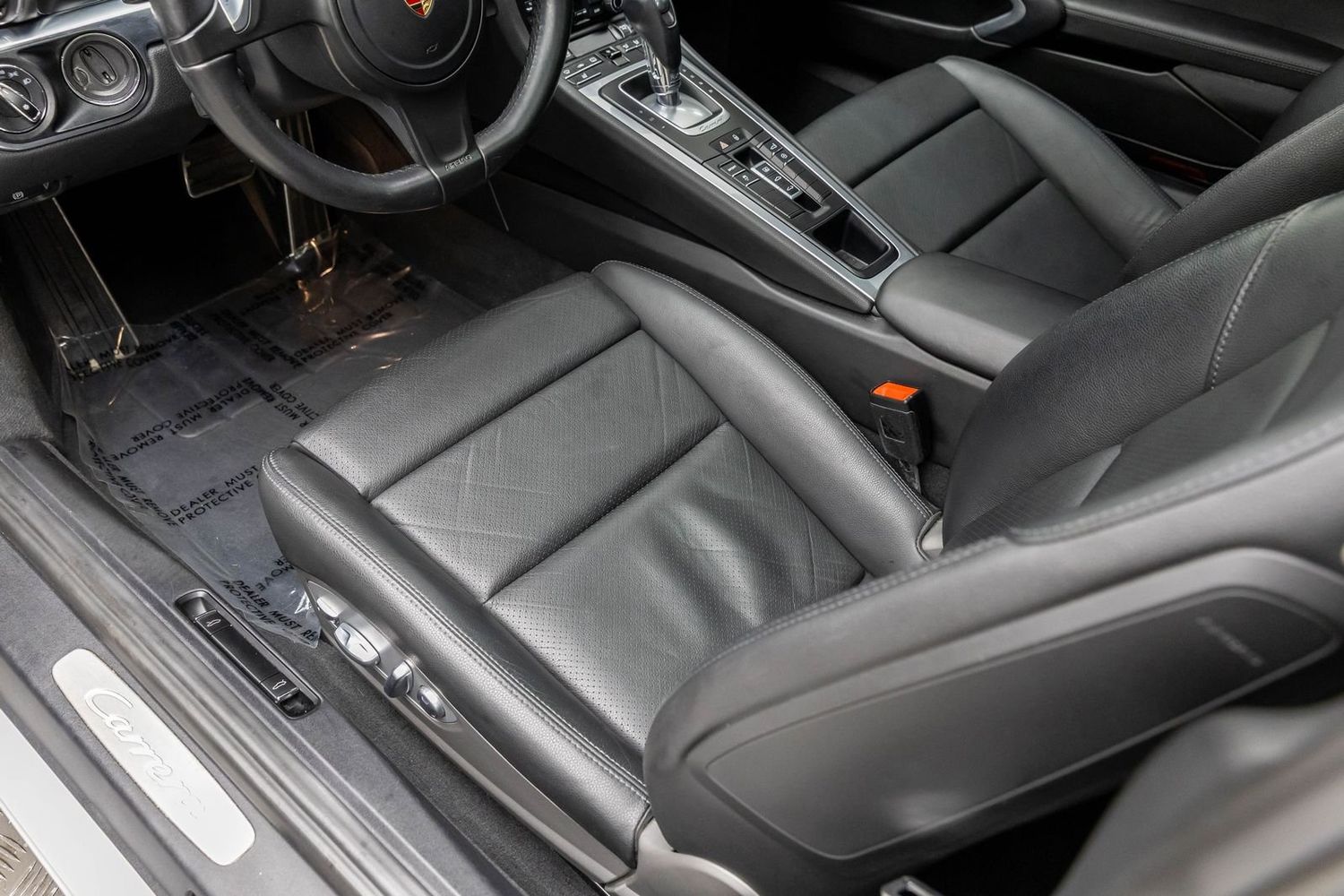 This Carrera rides on striking silver aluminum wheels fitted with Pirelli P-Zero Performance Tires ensuring exceptional grip around every corner—a true testament to Porsche's commitment to performance engineering perfection! Enhanced visibility comes courtesy of Bi-Xenon headlights featuring adaptive capabilities alongside automatically dimming mirrors providing optimal clarity day or night along with rare spec clear tailight option! Looks amazing with the white exterior.