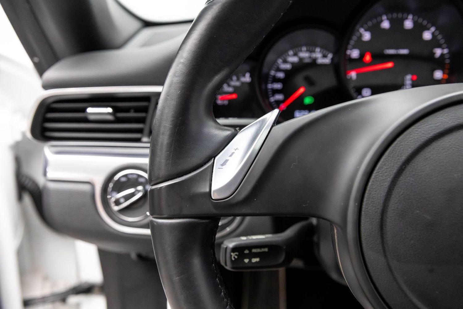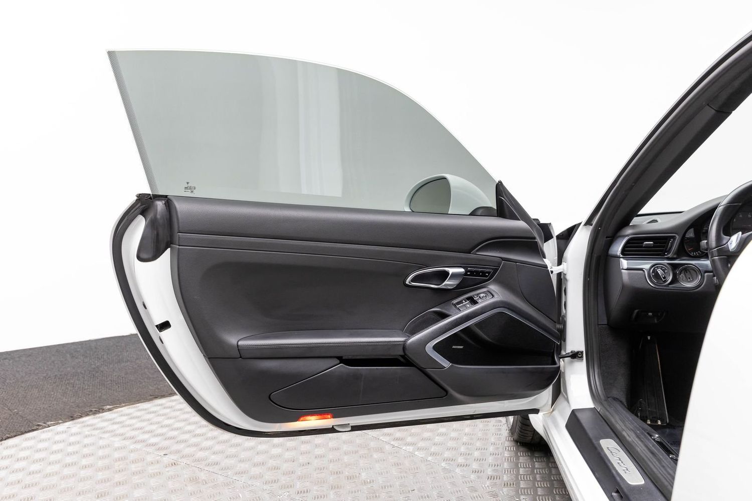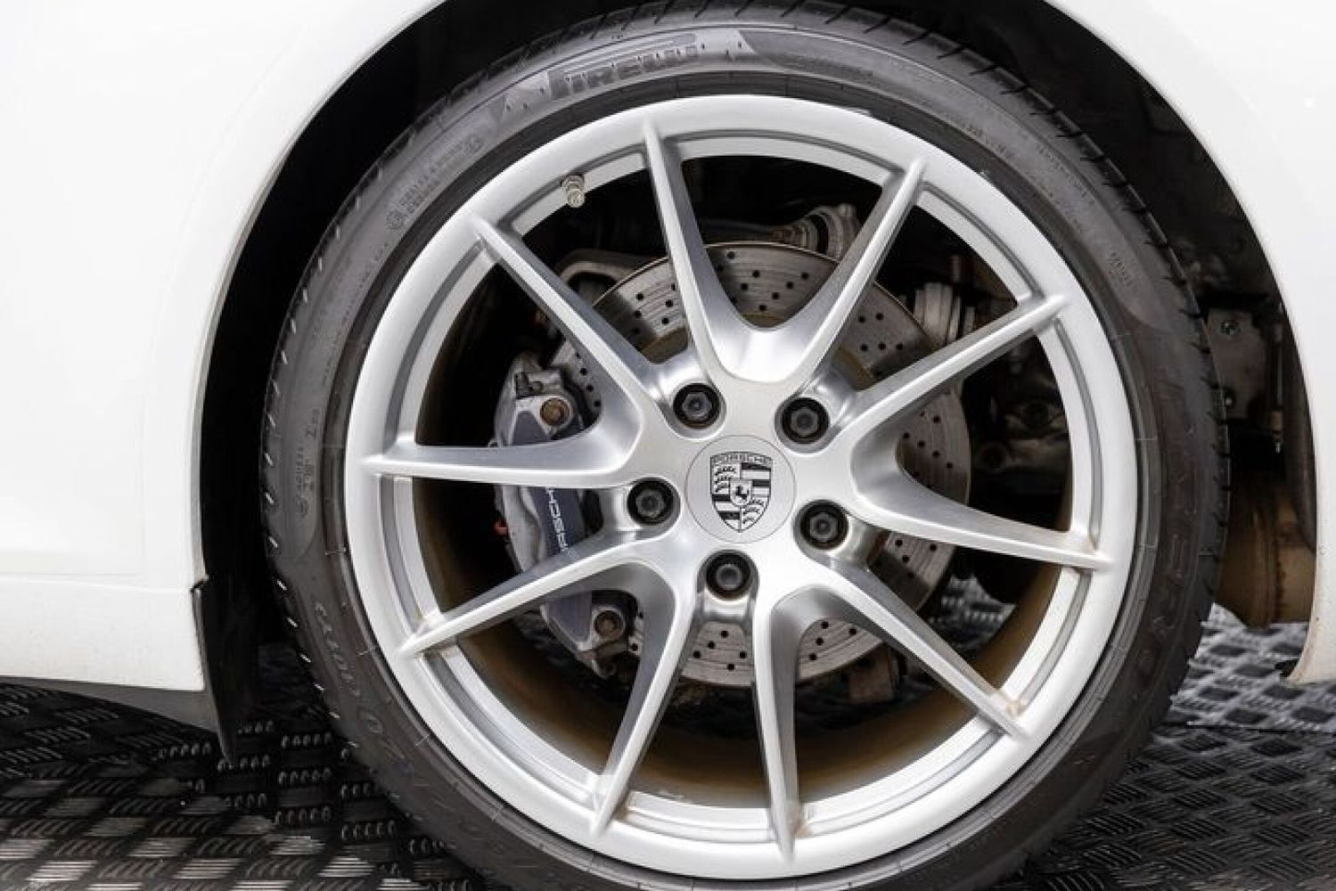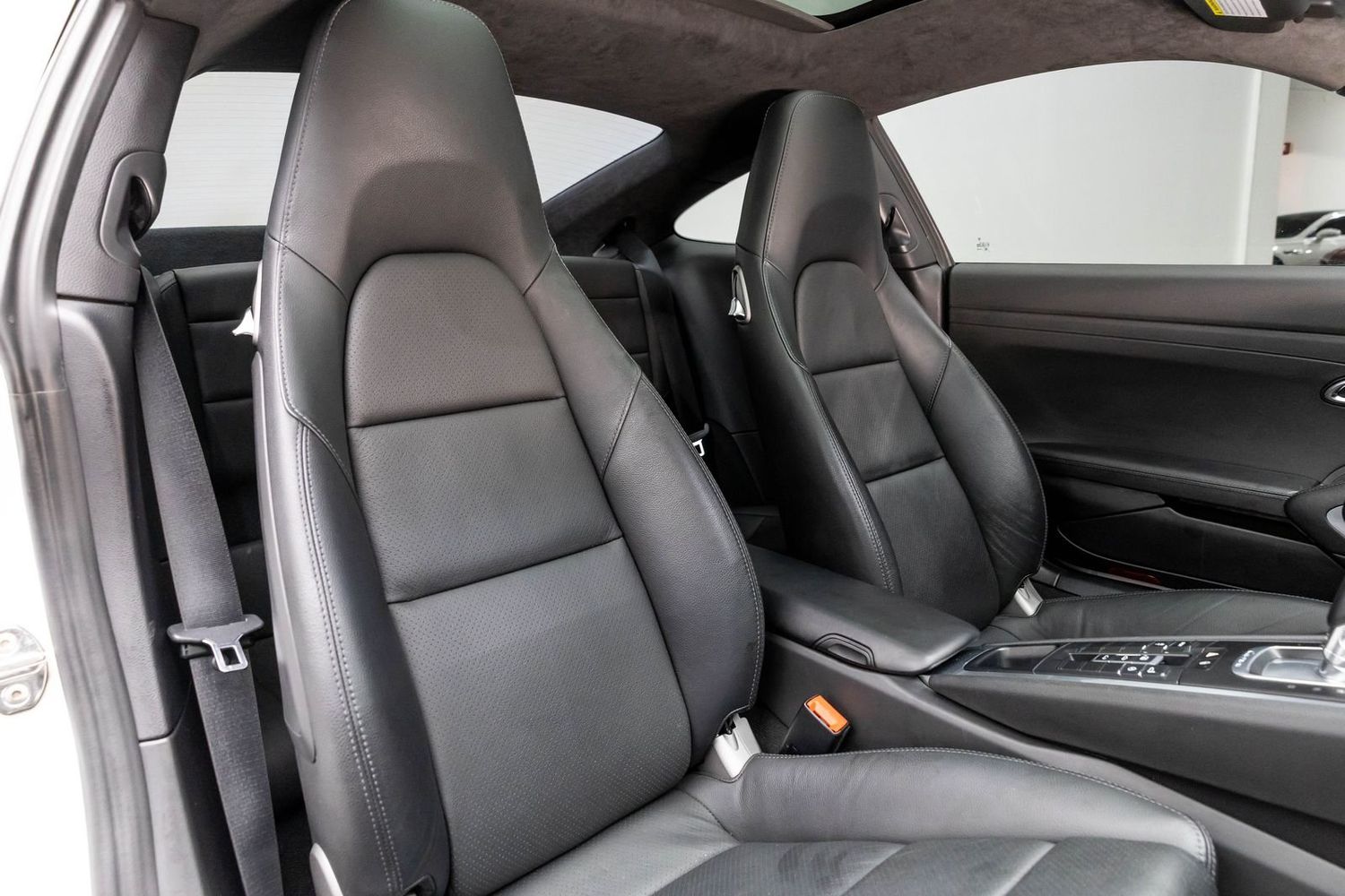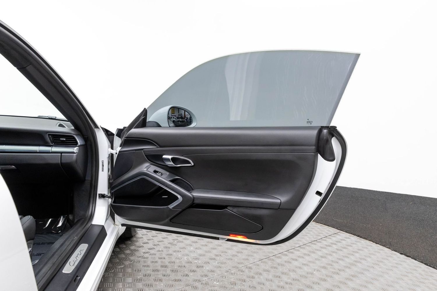 This Carrera rides on striking silver aluminum wheels fitted with Pirelli P-Zero Performance Tires ensuring exceptional grip around every corner—a true testament to Porsche's commitment to performance engineering perfection! Enhanced visibility comes courtesy of Bi-Xenon headlights featuring adaptive capabilities alongside automatically dimming mirrors providing optimal clarity day or night along with rare spec clear tailight option! Looks amazing with the white exterior.